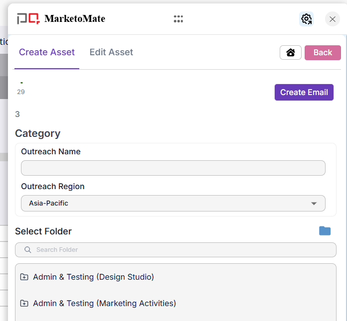 3. Choose an Asset Type from the available options — Email, Landing Page, Form, Program or Campaign.