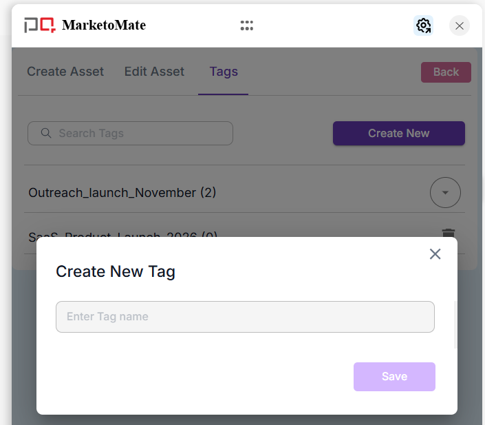 2. New tags can be created and added to assets while creating or editing any asset. This process will be explained later in this help document.