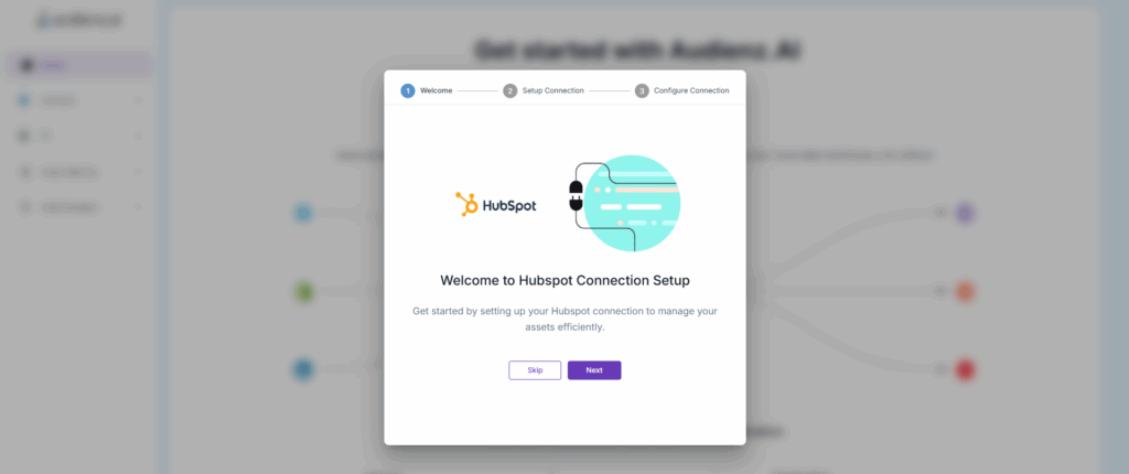 1. Click Next in the pop-up to begin setting up your HubSpot connection.