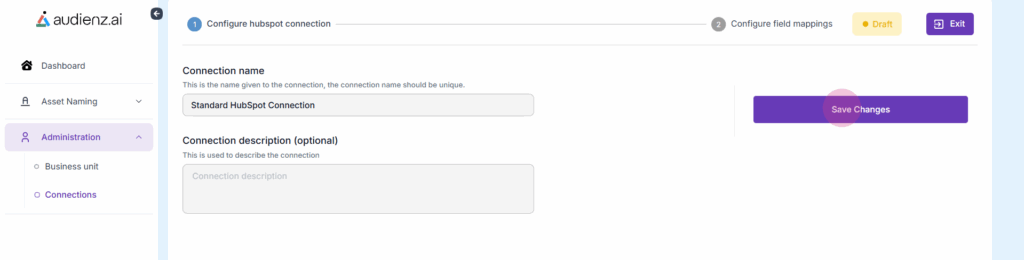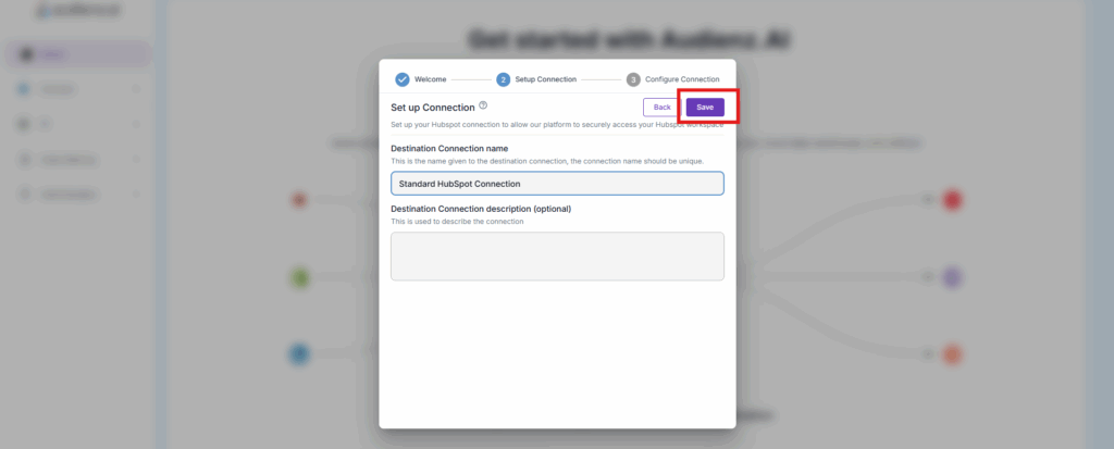 Note: Before clicking the Save Changes button, ensure the HubSpot account is open in the same browser (in a different tab) where the Audienz.ai app is open.