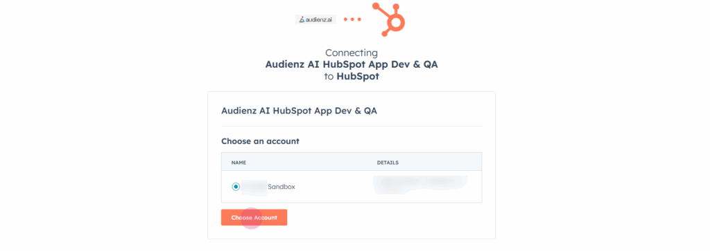 7. The user will then be redirected to their HubSpot account to authorize the connection. Select the appropriate HubSpot account when prompted.