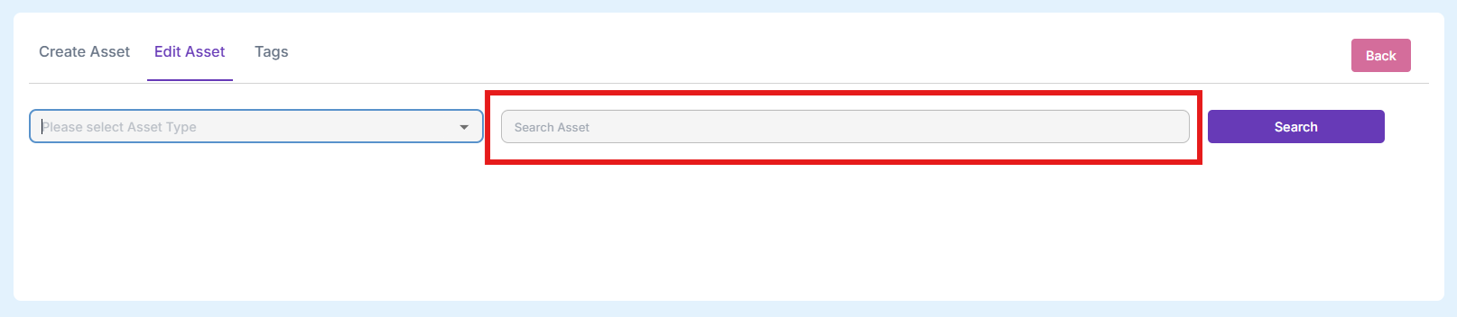 Step 2: Type in the name of the asset that needs renamed – in full and click on Search: