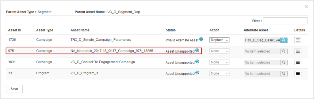 Clicking on Manage Dependency for Segment shows the other Completed Campaign that was not added to the package since it was not in the specified folder.