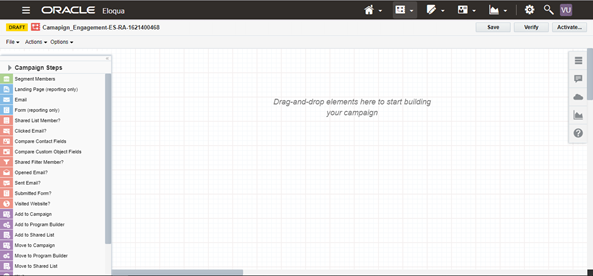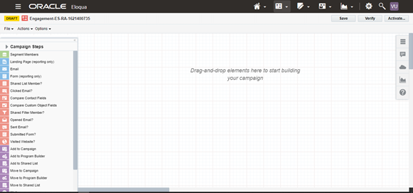 Launch the application from the Home page in Oracle Eloqua. The following screen will load.