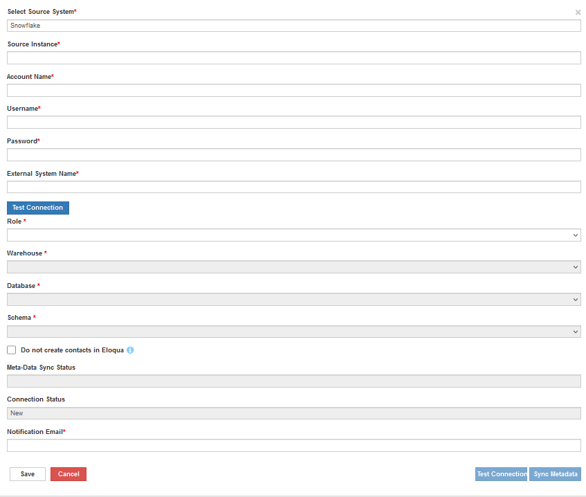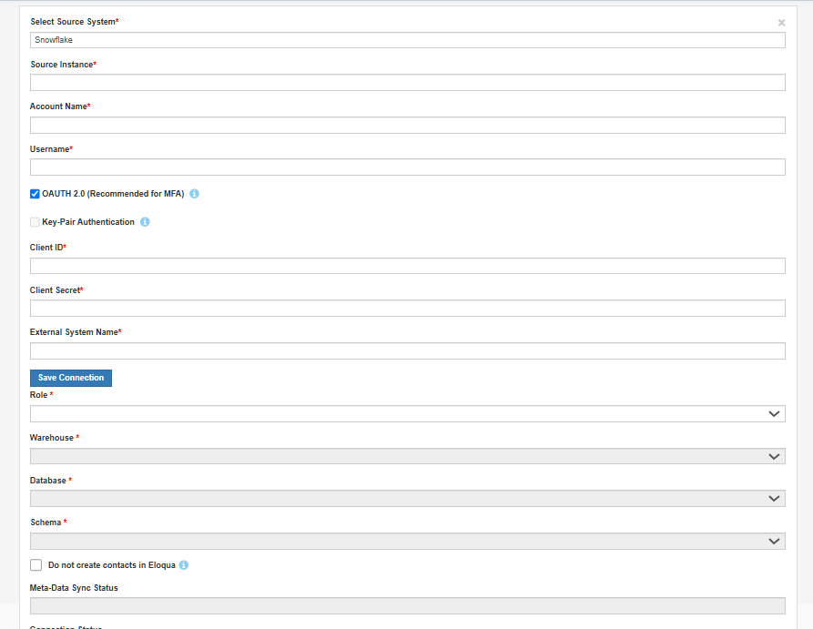 - Select Source System: Choose between one of the following values depending on the type of Source System you are connecting to Salesforce or Snowflake
