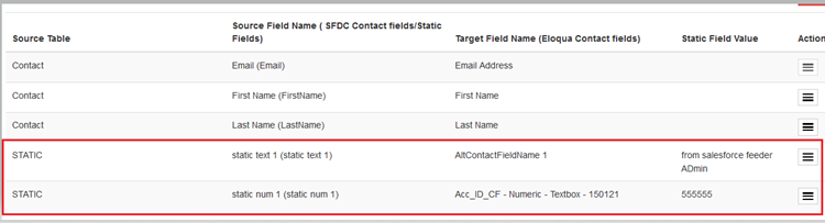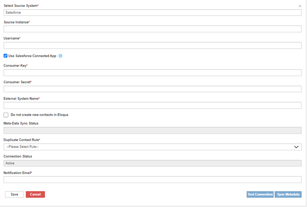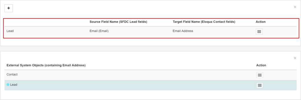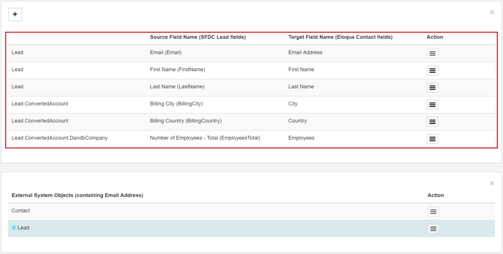 - Configure field mappings against the base Salesforce object and Eloqua Contact table