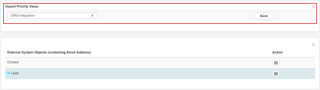 - Select one of the import priorities configured in the Oracle Eloqua instance and click Save.