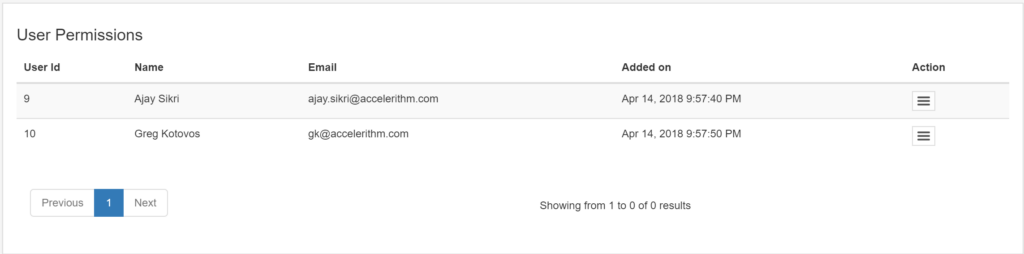 - Clicking the Plus icon will add the user to grid below giving that user permission to use the app.