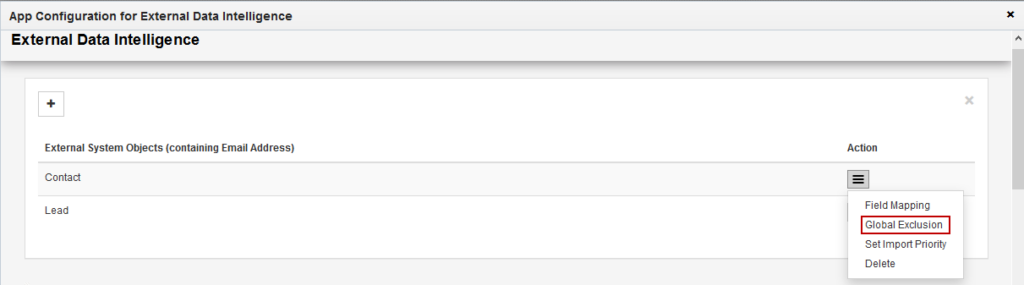 - Click the Menu icon against the added external system object and select Global Exclusion.