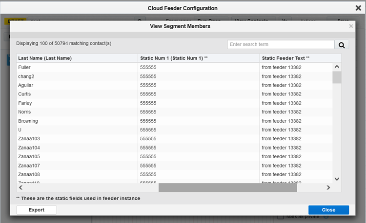 - Creating an EDI salesforce or snowflake feeder inside your campaign and clicking on view contacts will show you these static field values along with other salesforce or snowflake fields from Admin settings. These Static fields are suffixed with ** and an info message at the bottom of the table to differentiate them from the other Salesforce or Snowflake fields.