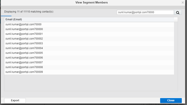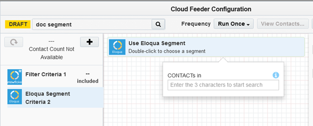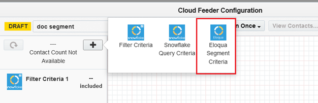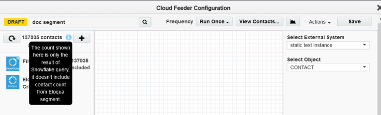 - The contact count visible to the user is the count resulting from the snowflake query only, it cannot show the combined result of snowflake and Eloqua segment contact count.