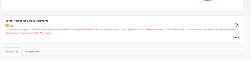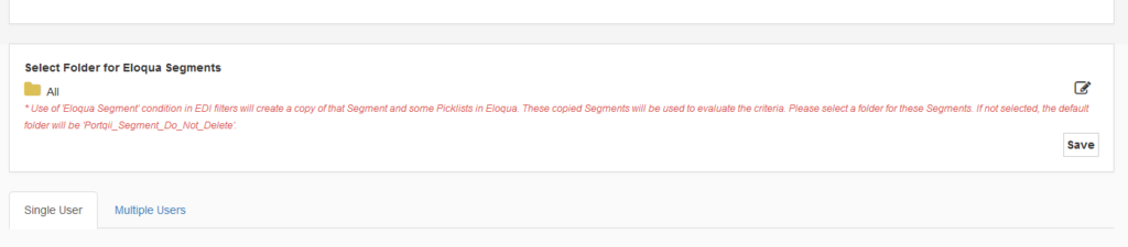 - Only one Eloqua segment can be added to the EDI as a filter criterion.