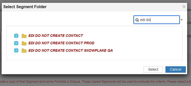 - EDI will not keep a track of the Eloqua segments and picklists created to process the contacts – they will be cleaned up, so don’t depend on the working-folder.