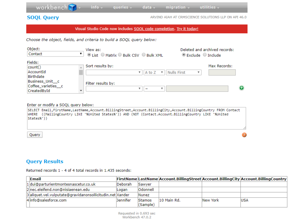 NOTE: Users will need advanced knowledge in writing SOQL queries. For more information on how to use Saelsforce.com Query language refer to: https://developer.salesforce.com/docs/atlas.en-us.soql_sosl.meta/soql_sosl/sforce_api_calls_soql_sosl_intro.htm