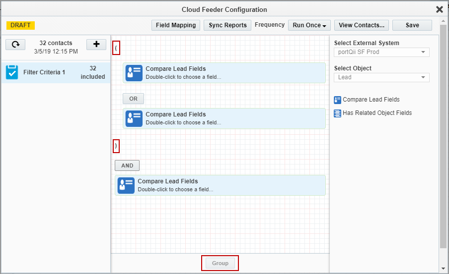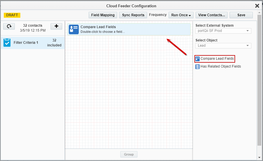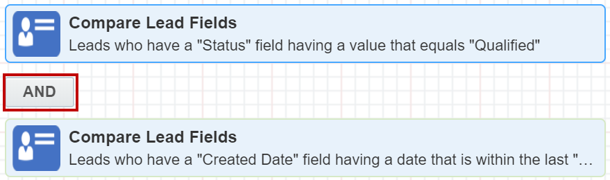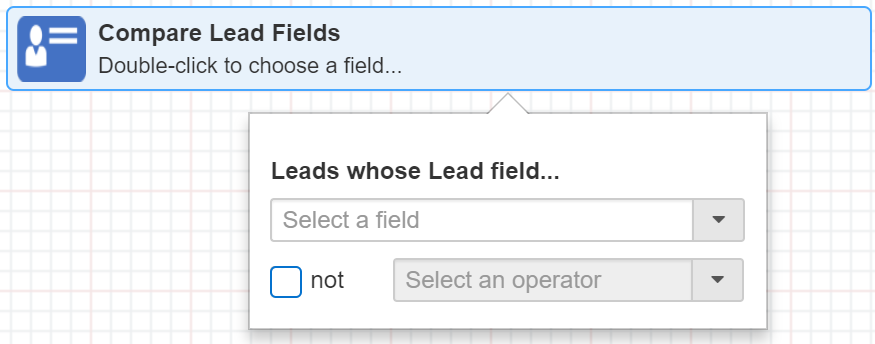 - In the right pane double-click the first or second filter criteria. E.g. Compare Lead Fields, Has Related Object Fields.