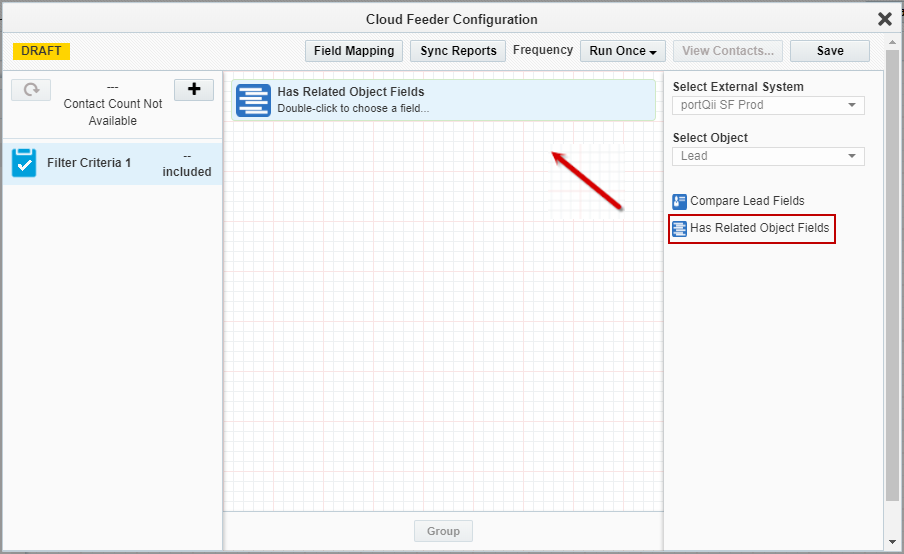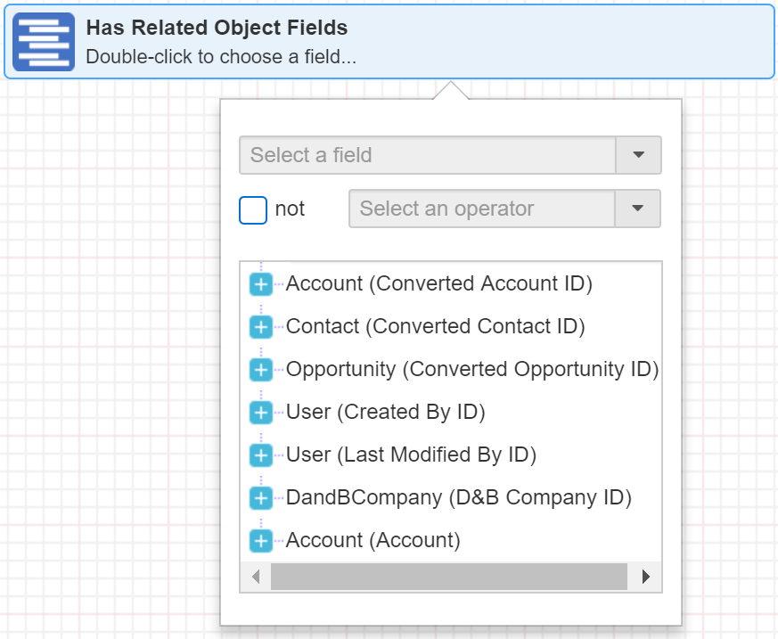 - In the right pane double-click the second filter criteria. E.g. Has Related Object Fields.