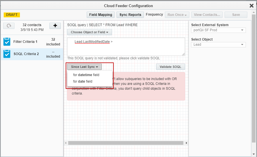 To add ‘Since Last Sync’ feature to the SOQL Criteria: #