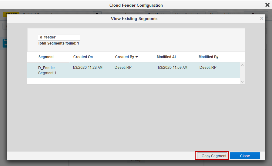 - Select the required Segment and click on ‘Copy Segment’.