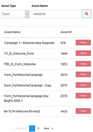 - Opening the Sync app from Eloqua's home page shows a page where you can click the start button to sync your desired asset. The search box helps you find recently synced assets from this Eloqua instance. Once you start using the app, recent synced items appear here for quick access.
