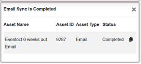 For example, if an email or its child assets contain cloud content, the asset with cloud content gets "Action required" status, and the overall sync status becomes "Action required." You'll need to log into the target instance and manually add the missing cloud content to that asset.