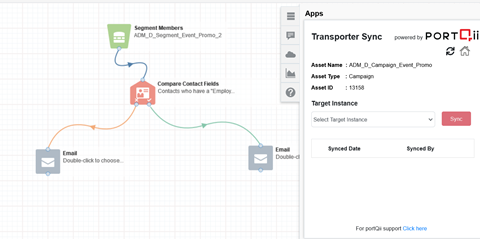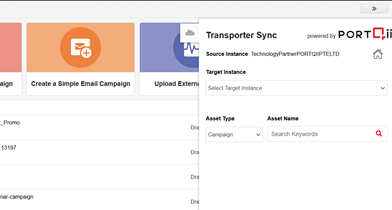 Transporter Sync lets you sync directly from inside an Eloqua asset, eliminating the need to search from the home page. Simply select the target instance and click Sync to start the process. Sync details appear on the same page.